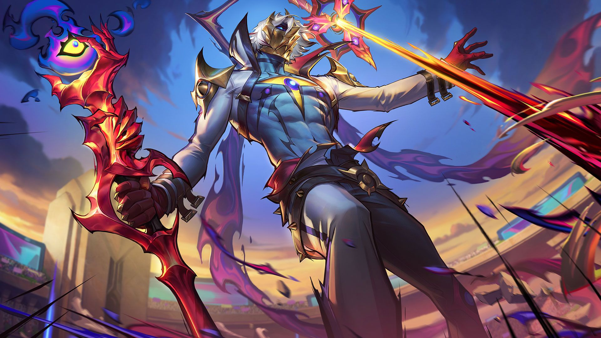 - При попадании атаки и умения наносят дополнительный физический урон (15 + 40% от силы атаки) вражеским чемпионам со щитом. Дополнительный урон может быть критическим. Кроме того, ты на 3 сек. получаешь щит прочностью 50% от дополнительного нанесенного урона.